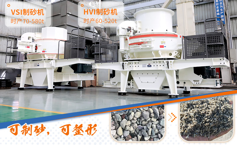 制砂機,兼具整形效果,將中細碎后的砂石料進行制砂整形,成品料粒度在0-5mm,粒形好,品質高,設備自動化程度高,安全可靠,耐用易保養(yǎng),節(jié)能環(huán)保,有三個HX、VSI和HVI三個系列,推薦型號HVI 0922(時產70-210噸)、VSI 8518(時產140-260噸)。